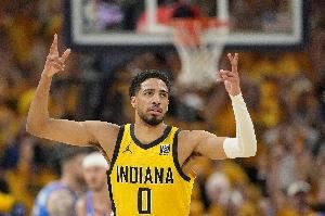 挺像那么回事!哈利伯顿场边正装指挥队友 神似球队主帅