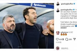 意大利国家队领队布冯社媒晒出与主帅加图索的合照,并写道:“昨晚比赛的结果非常重要,但更令我自豪的是蓝衣军团在赛场上展现的态度和个性。”